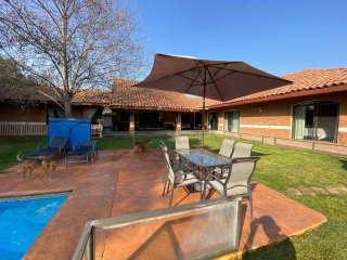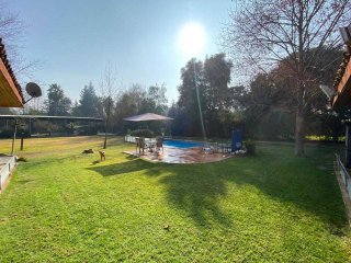 ¡PRECIO REBAJADO! Exclusiva casa en parcela dentro del prestigioso Condominio Polo Rayen de Chicureo. Esta parcela ofrece una combinación perfecta de seguridad, comodidad y privacidad en un entorno natural inigualable. Con una superficie total de 4.143,72 m², esta propiedad destaca por su ubicación estratégica, hermoso jardín y amplios espacios, con diseño colonial y una distribución funcional que privilegia la vida familiar y el contacto con la naturaleza. Características Principales: • Superficie terreno: 4.143m² • Superficie construida: 330m² (incluye 40m² de terraza techada) • Construcción principal: Casa de un piso con una arquitectura colonial y materiales de alta calidad. • 5 amplios dormitorios y 4 cómodos baños, incluyendo una suite principal con baño privado y walk-in closet, y otra habitación independiente de tipo servicio, con baño y estar incluido. • Cocina: Amplia, luminosa y completamente equipada, con comedor de diario. • Living y comedor: Espacios semi integrados con grandes ventanales, que brindan una conexión fluida con el exterior y terra y permiten una excelente iluminación natural. • Terraza techada con parrilla: ideal para disfrutar de encuentros al aire libre, con una vista despejada hacia los jardines y piscina. • Piscina de gran tamaño para disfrutar en familia. • Obras complementarias: Multicancha y bodega de estructura metálica sellada de 15m² • Urbanización: Accesos controlados, cableado subterráneo, agua potable de condominio (consumo incluido en los gastos comunes). Ubicación y Entorno: la propiedad se encuentra en el sector Lo Pinto, Chicureo, una de las zonas más exclusivas y demandadas de Chicureo/Colina, con baja densidad poblacional, excelente calidad ambiental y un diseño urbanístico que garantiza privacidad y seguridad. Excelente conectividad a autopistas interurbanas y servicios esenciales. Es el refugio soñado para tu familia: ¡vive seguro, en un entorno exclusivo, tranquilo y rodeado de naturaleza! SANHER Propiedades