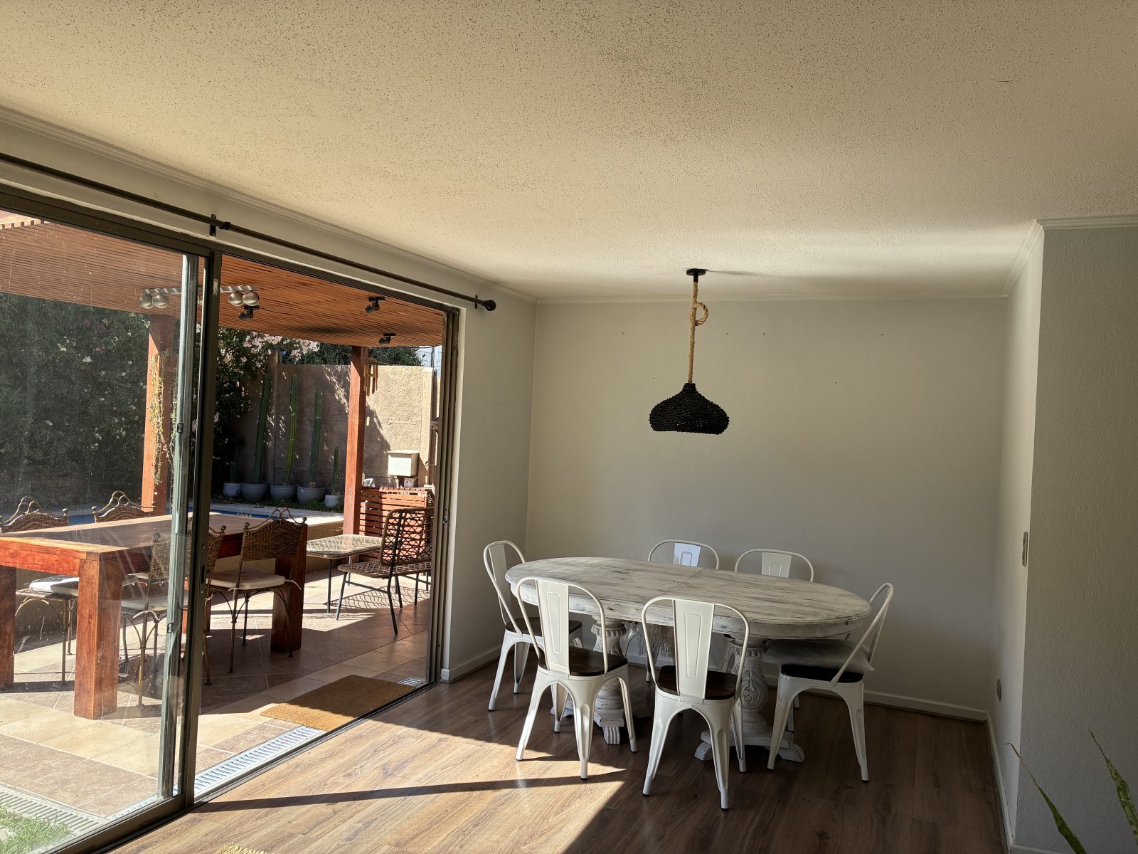 Hermosa casa con jardin, piscina y terraza con parrilla, en el condominio La Sierra de Chicureo. La renta de arriendo de $1.140.00” incluye el gasto comun, el jardinero y el piscinero. 1 habitación principal con walking closet, y baño en suite. 2 habitaciones en segundo piso con vista despejada. Living comedor amplio e iluminado con salida al jardin. Cocina completa equipada. Loggia-lavadero. Bodega. Baño completo y family room en segundo piso. Baño visitas. SIN COMISION Disponible desde el 1 de febrero 2026